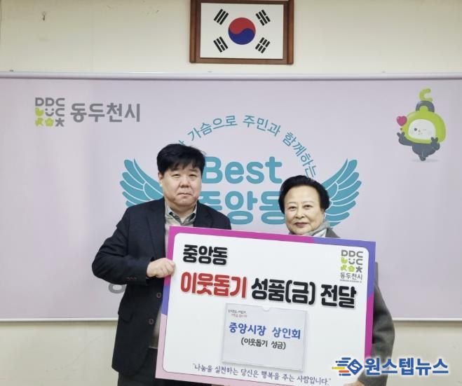 원스텝뉴스 이병희 기자 | 동두천시 중앙시장 상인회는 지난 10일 설을 맞아 이웃돕기 성금 30만 원을 중앙동 행정복지센터에 전달했다고 밝혔다.
