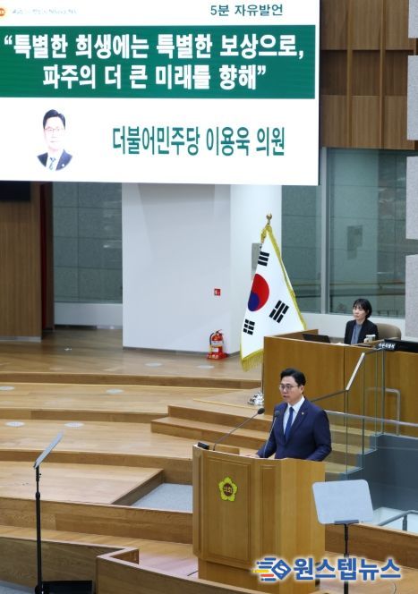 원스텝뉴스 이병희 기자 | 경기도의회 경제노동위원회 이용욱 의원(더불어민주당, 파주3)이 12일 열린 제388회 임시회 제4차 본회의에서 5분 자유발언을 통해, 70년 넘게 안보를 위해 희생해 온 파주시민에게 정부가 미군 반환공여지를 조속히 무상 양여할 것을 강력하게 촉구했다.