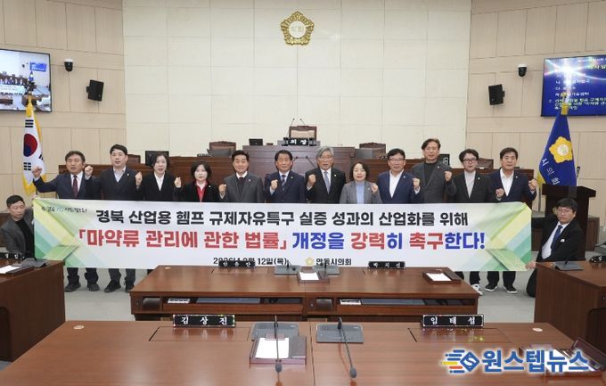 원스텝뉴스 이병희 기자 | 안동시의회는 12일 열린 제264회 임시회 제4차 본회의에서 이재갑 의원이 대표발의하고 의원 전원이 공동발의한 '경북 산업용 헴프 규제자유특구 실증 성과의 산업화를 위한 '마약류 관리에 관한 법률' 개정 촉구 건의안'을 채택했다.
