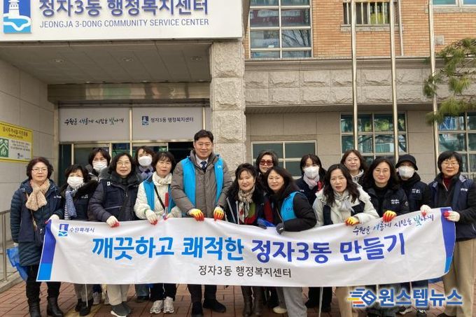 원스텝뉴스 이병희 기자 | 수원시 장안구 정자3동은 지난 12일, 설 연휴를 앞두고 통장협의회와 함께 관내 일제 대청소를 실시했다.