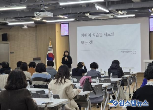 이번 집합교육에는 관내 어린이 급식시설(어린이집, 유치원, 지역아동센터) 40개소의 원장과 센터장이 참여했으며, 바른 식습관연구소 김아람 강사가 ‘어린이 식습관 지도법’을 주제로 강의를 진행했다.