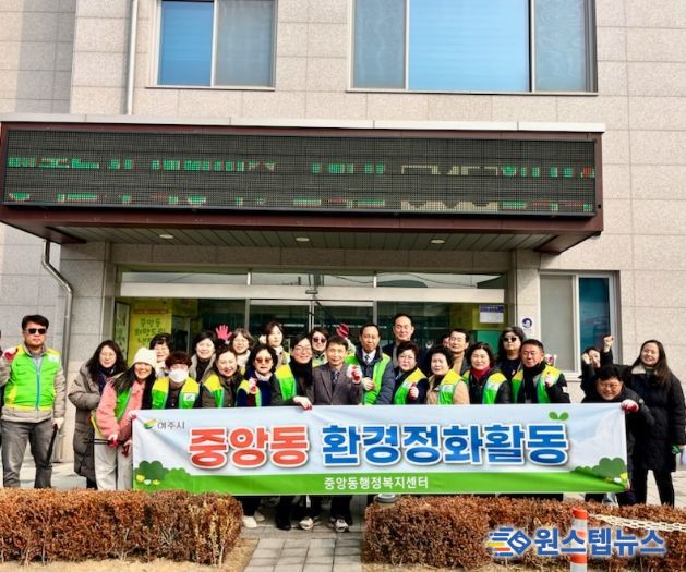 원스텝뉴스 이병희 기자 | 여주시 중앙동 행정복지센터는 설 명절을 맞아 2월 13일 직원들과 주민자치위원이 참여한 가운데 쾌적한 마을 환경 조성을 위한 환경정화활동을 실시했다. 이번 활동은 명절 기간 고향을 방문하는 귀성객과 주민들에게 깨끗하고 정돈된 중앙동 이미지를 제공하고, 생활 주변 환경 개선을 통해 따뜻한 명절 분위기를 조성하고자 마련됐다.