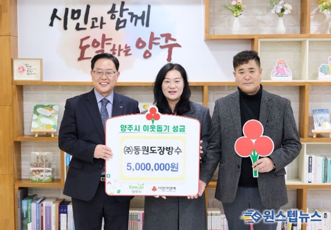 원스텝뉴스 이병희 기자 | 양주시는 지난 12일 ㈜동원도장방수로부터 이웃돕기 성금 500만 원을 기탁받았다고 밝혔다.