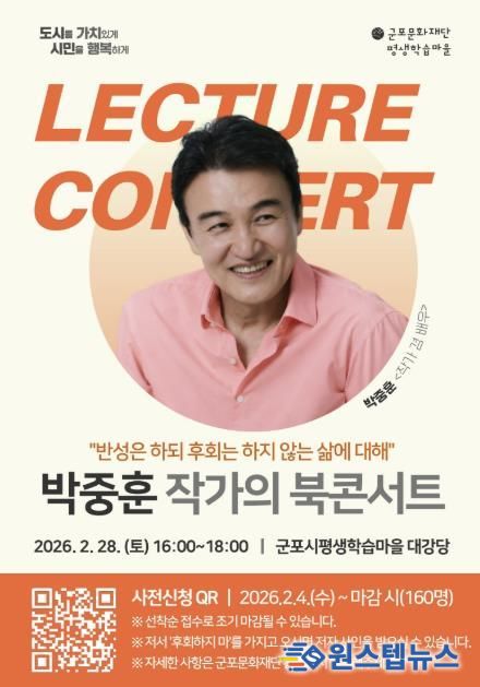 원스텝뉴스 이병희 기자 | 군포문화재단 군포시평생학습마을은 2월 28일 렉처콘서트의 일환으로 북콘서트를 개최한다. 올해 3회를 맞이하는 렉처콘서트는 시민이 참여하여 즐길 수 있는 평생학습 대표 행사로서 자리매김하고 있다.