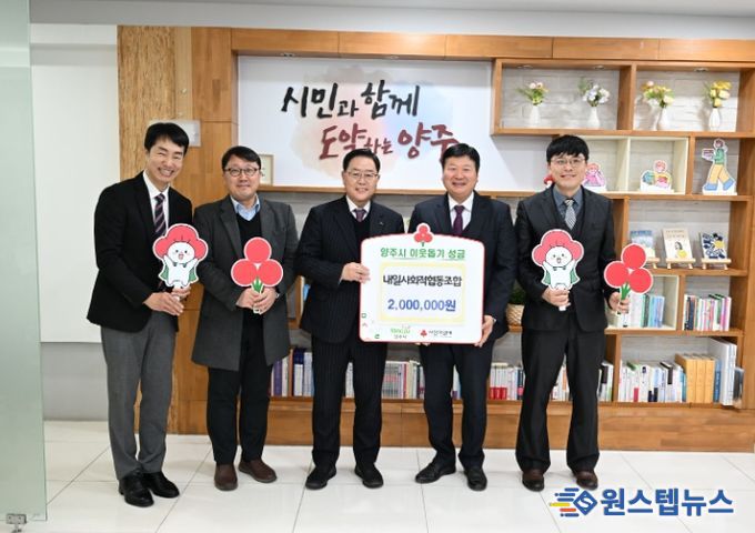 원스텝뉴스 이병희 기자 | 양주시는 13일 내일사회적협동조합으로부터 이웃돕기 성금 200만 원을 기탁받았다고 밝혔다.