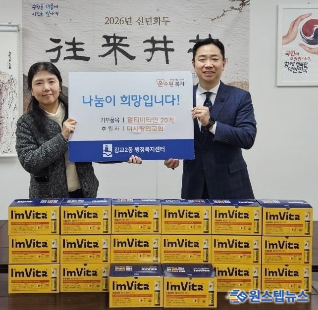 원스텝뉴스 이병희 기자 | 영통구 광교2동은 지난 13일 더사랑의교회가 지역사회 내 어려운 이웃을 돕기 위해 광교2동 행정복지센터에 멀티비타민 20통을 전달했다고 밝혔다. 이번 기부는 소외되기 쉬운 이웃들에게 따뜻한 마음을 전하고자 마련됐다.
