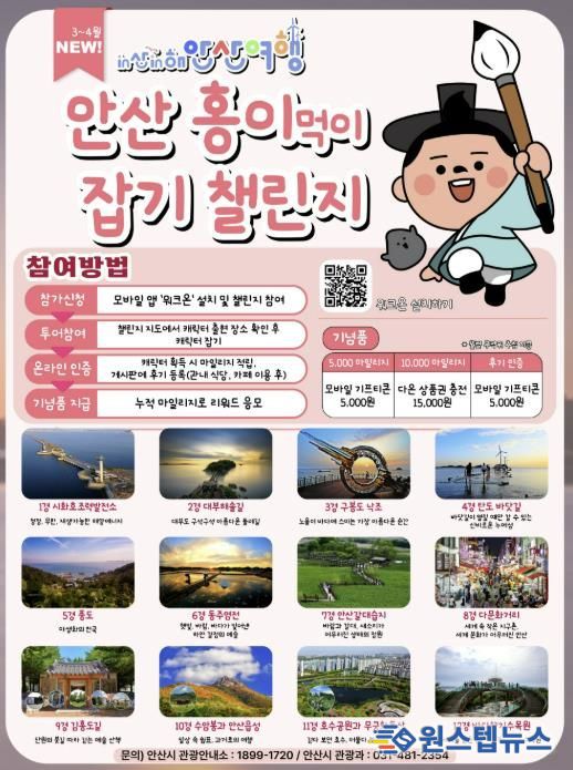 원스텝뉴스 이병희 기자 | 안산시는 오는 3월부터 6월까지 4개월간 ‘in산in해 안산여행 캐릭터잡기 챌린지’를 운영한다고 23일 밝혔다.
