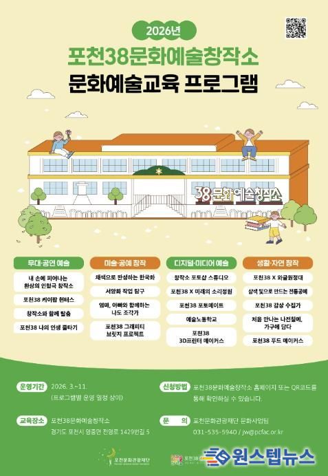 원스텝뉴스 이병희 기자 | 포천문화관광재단은 포천38문화예술창작소의 ‘2026년도 시민 대상 문화예술교육 프로그램’을 공개하고 본격적인 운영에 나선다.