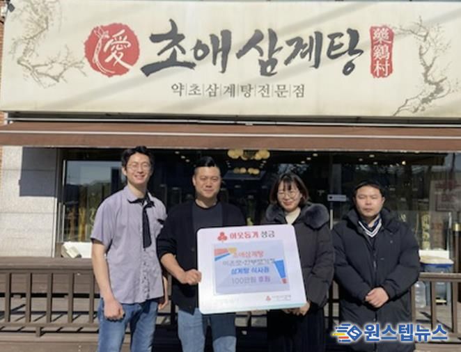 초애삼계탕 이기명 대표는 “아이를 키우는 이웃에게 특별한 한 끼를 대접하고 가족이 함께하는 행복한 시간을 선물할 수 있어 기쁘다.”며 “앞으로도 주변의 어려운 이웃을 살피며 나눔을 이어가겠다”고 말했다.