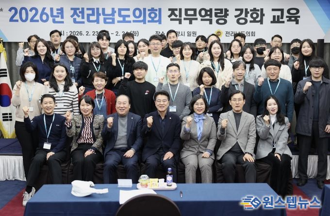 원스텝뉴스 이병희 기자 | 전라남도의회는 2월 23일부터 24일까지 1박 2일간 광양시 일원에서 ‘2026년 정책지원관 역량강화 워크숍’을 개최하고, 정책지원관의 전문성과 의정 지원 역량 강화를 위한 교육을 실시했다.
