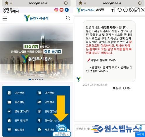 원스텝뉴스 이병희 기자 | 용인도시공사는 공사 홈페이지에 생성형 AI 기반 ‘대화형 챗봇 서비스’를 본격 제공한다고 24일 밝혔다.