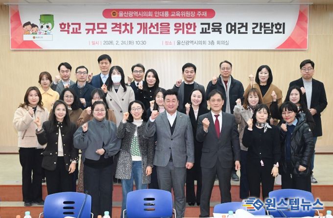 원스텝뉴스 이병희 기자 | 울산광역시의회 교육위원회 안대룡 위원장은 2월 24일(화) 오전 울산시의회 3층 회의실에서, 학교 규모 차이가 학생들의 평가 환경과 경쟁 조건에 어떤 영향을 미치고 있는지를 현장에서 직접 듣고 향후 개선 방향을 논의하기 위해 학부모 간담회를 개최했다.