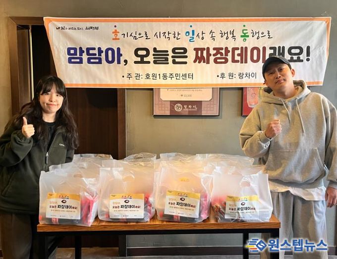 이번 후원은 지역 내 ▲한부모가족 ▲장애인가구 ▲중장년 1인가구 등 취약계층의 식생활 안정을 돕기 위해 마련됐다. 짜장꾸러미는 짜장소스, 음료수, 라면 등으로 구성됐으며 호원1동에서 선정한 취약가구 25가구에 매달 직접 전달할 예정이다.