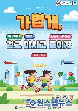송탄보건소는 비만 예방 핵심 메시지로 ‘가볍게 걷고, 물을 마시고, 나트륨·당·지방을 줄이자’를 집중 홍보하며, 4월 4일 시민건강걷기대회 현장에서도 홍보부스를 운영할 예정이다.