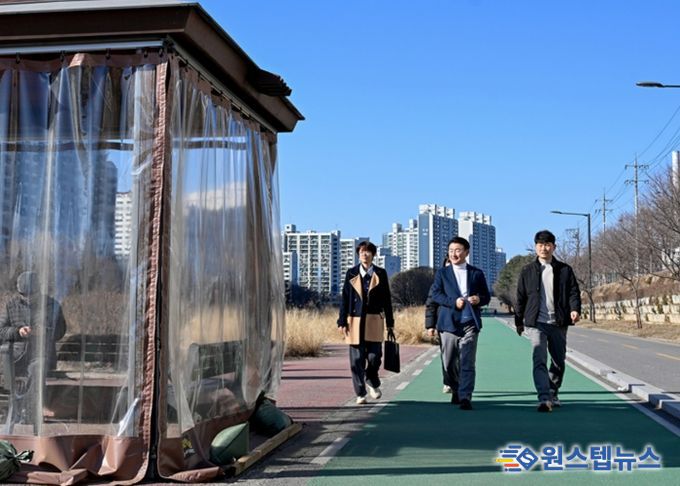 이날 시는 중랑천과 부용천 구간을 이동하며 따숨길 방풍막, 파고라, 교량 하부 따숨터 등 주요 시설을 살폈다. 특히 안전관리 강화를 위해 방풍시설 고정 상태와 지지대 결속 여부 등을 꼼꼼히 점검했다. 또한, 현장에서 시설을 이용하는 시민들과 소통하며, 시설 체감도와 개선 의견도 청취했다.