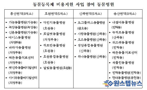 동물등록제는 반려동물에 대한 소유자의 책임의식을 강화하고 동물보호 의식을 제고하며, 유기‧유실을 방지하기 위해 2014년 1월부터 시행 중인 제도이며, 올해는 관내 동물병원 26개소가 사업에 참여한다.