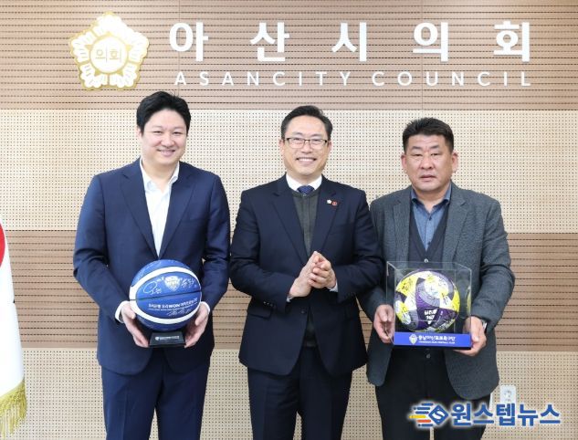 간담회 후에는 아산프로축구단, 우리은행 우리WON 여자프로농구단 사인볼 전달식이 진행됐으며, 전달된 사인볼은 아산시의회에 기증됐다.