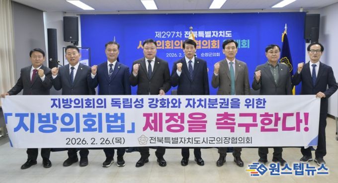 손 의장은 “진정한 지방자치는 지방의회의 실질적 권한 보장에서 출발한다”며 “전북특별자치도 14개 시군의회가 뜻을 모아 지방의회법 제정이라는 시대적 과제를 실현해 나가겠다”고 밝혔다.