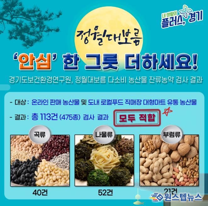 원스텝뉴스 이병희 기자 | 경기도보건환경연구원이 정월대보름을 맞아 1월 26일부터 2월 13일까지 3주간 다소비 농산물을 대상으로 잔류농약 검사를 실시한 결과, 모든 제품이 허용 기준치 이내로 확인됐다고 27일 밝혔다.