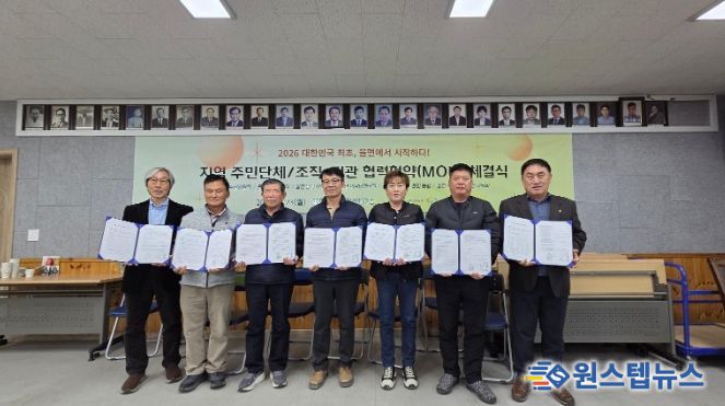 원스텝뉴스 이병희 기자 | 지난 2월 23일 율면 주민단체들이 율면 기초생활거점조성사업 지역역량강화사업으로 2026년 지역 발전과 공동체 운영 강화를 위한 ‘협력협약(MOU)’을 체결하고 본격적인 공동 운영체계 구축에 나섰다.