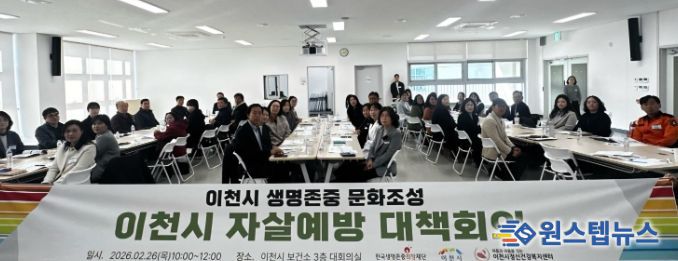 원스텝뉴스 이병희 기자 | 이천시는 2월 26일 이천시보건소 3층 대회의실에서 자살고위험시기에 지역 내 자살위험 증가에 선제적으로 대응하기 위해 증포동을 중심으로 자살예방 유관기관 관계자들을 초청하여 ‘자살예방 대책회의’를 개최했다.