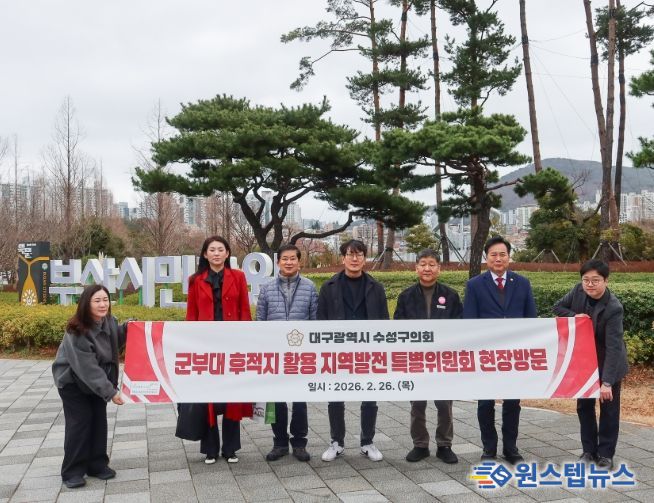 원스텝뉴스 이병희 기자 | 대구 수성구의회 ‘군부대 후적지 활용 지역발전 특별위원회’가 군부대 이전에 따른 후적지 활용 방향을 모색하기 위해 지난 2월 26일 부산시민공원을 방문했다.
