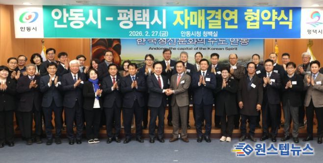 원스텝뉴스 이병희 기자 | 평택시의회는 2월 27일, 안동시청에서 평택시-안동시 자매결연 협약식에 참석해 양 도시의 상생 발전을 다짐했다.