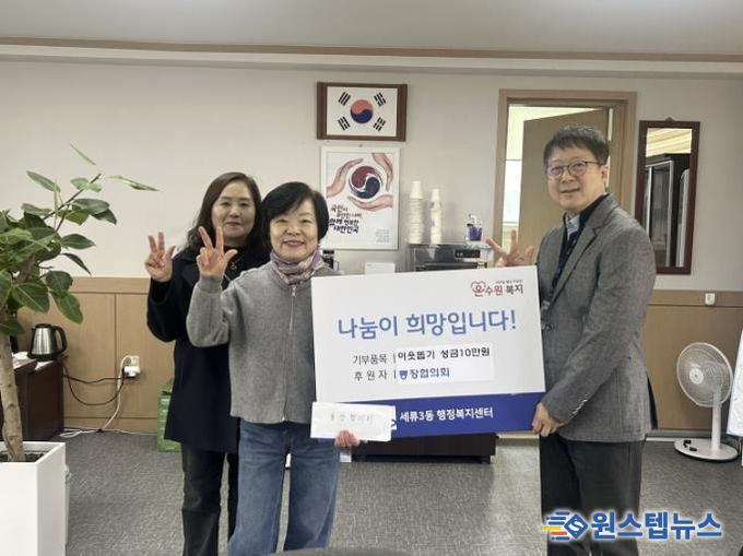 원스텝뉴스 이병희 기자 | 수원시 권선구 세류3동 통장협의회는 지난 26일, 동 행정복지센터에 이웃 돕기 성금 10만 원을 기부하며 지역사회 나눔 실천에 동참했다.