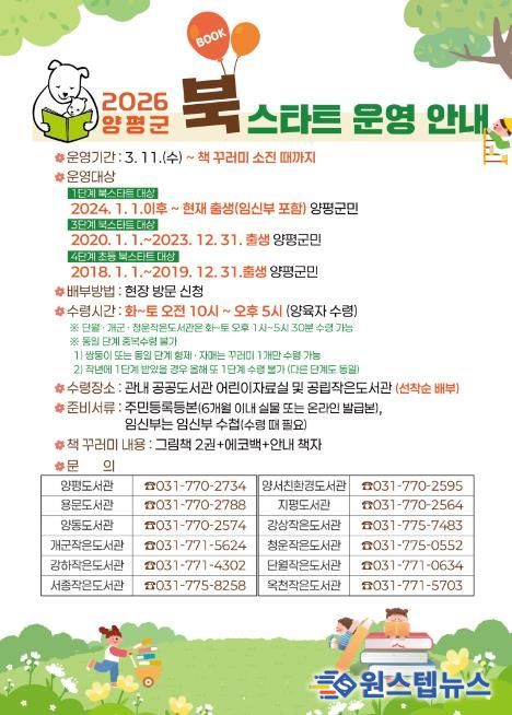 원스텝뉴스 이병희 기자 | 양평군은 오는 11일부터 ‘2026년 북스타트 사업’을 본격 운영한다고 밝혔다.