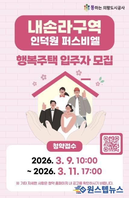 원스텝뉴스 이병희 기자 | 의왕도시공사가 공사 설립 이후 최초로 행복주택 공급에 나서며, 의왕시 거주 청년·신혼부부·고령자를 대상으로 내손라구역 행복주택 입주자 모집을 실시한다.