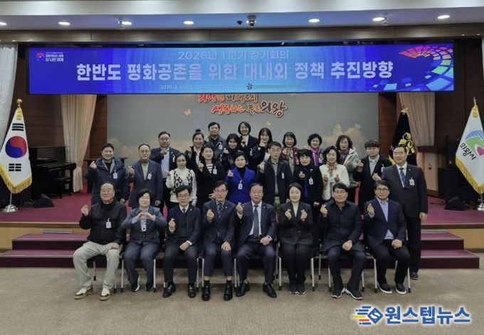 원스텝뉴스 이병희 기자 | 민주평화통일자문회의 의왕시협의회가 3월 4일 시청 대회의실에서 김학기 시의회 의장, 이소영 국회의원, 자문위원 등 40여 명이 참석한 가운데‘한반도 평화공존을 위한 대내외 정책 추진방향’을 주제로‘2026년 1분기 정기회의’를 개최했다.