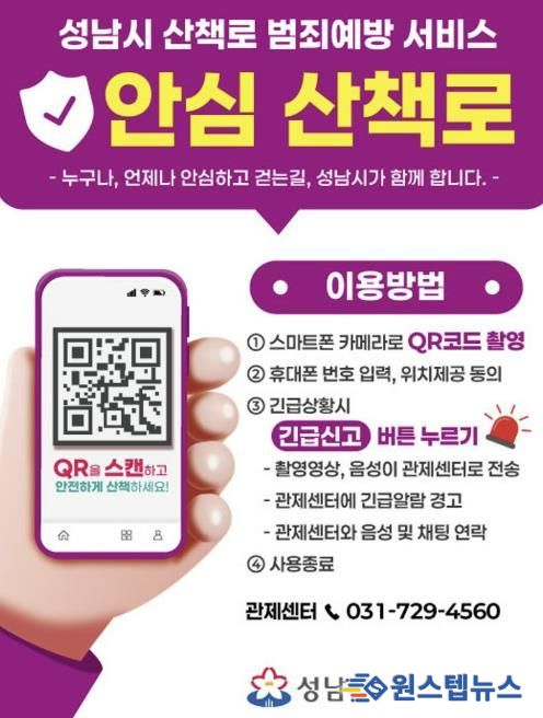 시민들은 산책로 입구에서 스마트폰으로 '산책로 범죄예방 서비스' 큐알(QR)코드를 인식하면 별도 앱 설치 없이 즉시 서비스를 이용할 수 있다. 위급 상황 시 긴급신고를 하면 성남시 폐쇄회로텔레비전(CCTV) 관제센터로 현재 위치와 영상이 전송되며, 필요시 음성 대화와 채팅으로 소통할 수 있다.