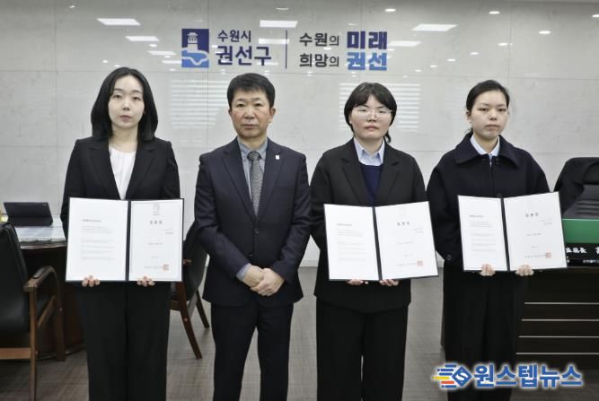 원스텝뉴스 이병희 기자 | 수원시 권선구는 지난 5일, 권선구청 2층 집무실에서 신규 공직자 3명이 참석한 가운데 임용장 수여식을 개최했다.
