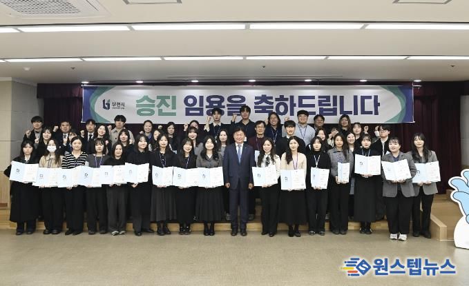 원스텝뉴스 이병희 기자 | 부천시는 지난 5일 부천시청 소통마당에서 3월 수시인사에 따른 임용장 수여식을 열었다. 이날 수여식은 승진자들의 노고를 격려하고 새로운 직무에서의 책임과 역할을 다짐하는 자리로 마련됐다.
