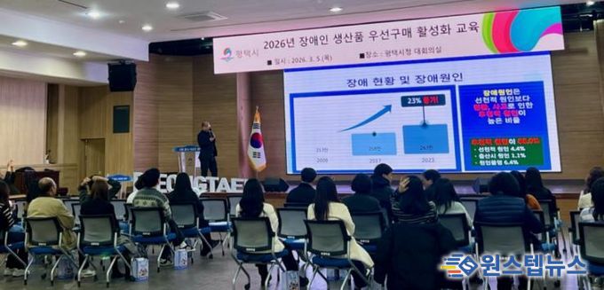 원스텝뉴스 이병희 기자 | 평택시는 지난 5일 시청 본관 2층 대회의실에서 평택시 공무원을 대상으로 '2026년 장애인생산품 우선구매 활성화 교육’을 실시했다.