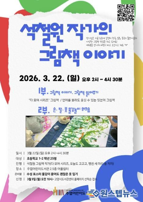 원스텝뉴스 이병희 기자 | 고양특례시 주엽어린이도서관은 어린이들이 그림책 작가를 직접 만나 창작 이야기를 듣고 물감놀이에 참여할 수 있는 프로그램 ‘석철원 작가의 그림책 이야기’를 오는 3월 22일 운영한다.