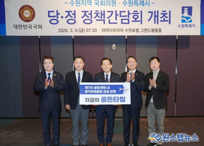 원스텝뉴스 이병희 기자 | 이재준 수원특례시장은 6일 라마다프라자 수원호텔에서 열린 지역 국회의원들과 당·정 정책간담회에서 “제7차 공항개발 종합계획에 ‘경기국제공항’ 건설 내용이 반영될 수 있도록, 경기도와 협의해 달라”고 요청했다.