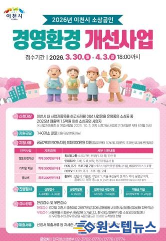 원스텝뉴스 이병희 기자 | 이천시는 관내 소상공인의 사업 경쟁력을 강화하기 위하여 2026년 소상공인 경영환경개선사업을 추진한다. 한국생산성본부와 협약을 체결하여 2024년에 시작한 이번 사업은 올해 세 번째를 맞이했다.