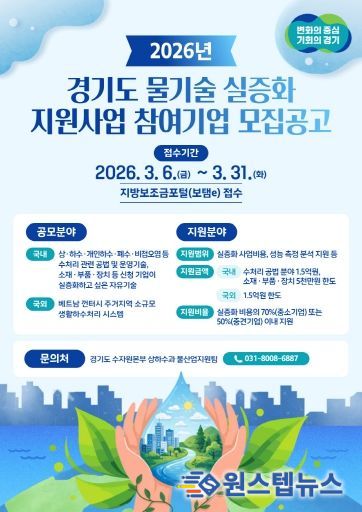 원스텝뉴스 이병희 기자 | 경기도가 ‘2026년 경기도 물기술 실증화 지원사업’ 참여 기업을 공개 모집한다.
