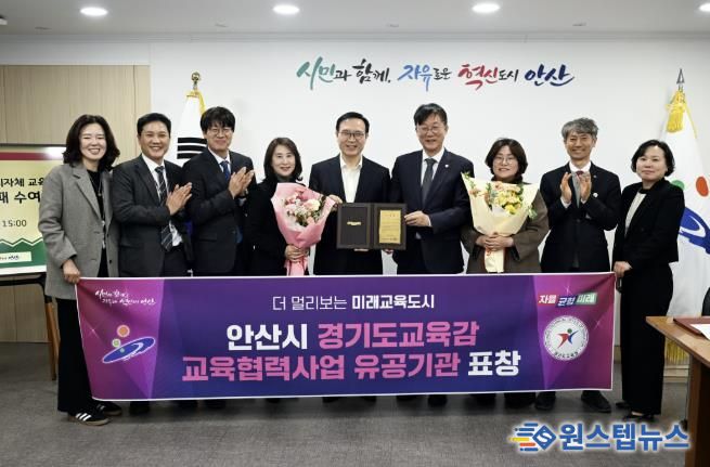 이민근 안산시장은 “이번 감사패는 교육청과 함께 안산의 미래인 학생들이 행복한 교육환경에서 성장할 수 있도록 노력해 온 결과”라며 “앞으로도 교육여건 개선과 우수 교육 프로그램 지원을 확대해 교육이 곧 안산의 경쟁력이 될 수 있도록 행정적 지원을 아끼지 않겠다”고 말했다.