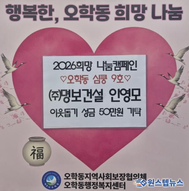 한편 이날 기탁된 성금은 오학동 지역사회보장협의체를 통해 관내 취약계층 지원을 위한 복지사업에 사용될 예정이다.