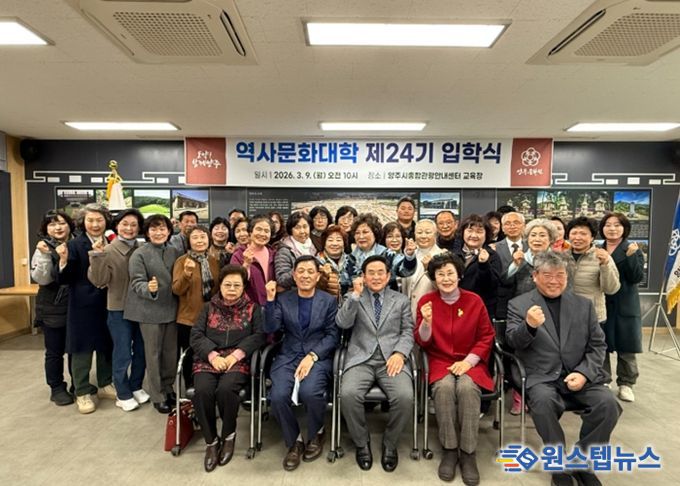 이번 입학식에는 역사문화대학 제24기 신입생 39명과 문화원 관계자 등이 참석했으며, 신입생들은 앞으로 다양한 강의와 현장 답사를 통해 양주의 역사와 문화유산에 대한 이해를 넓혀갈 예정이다.