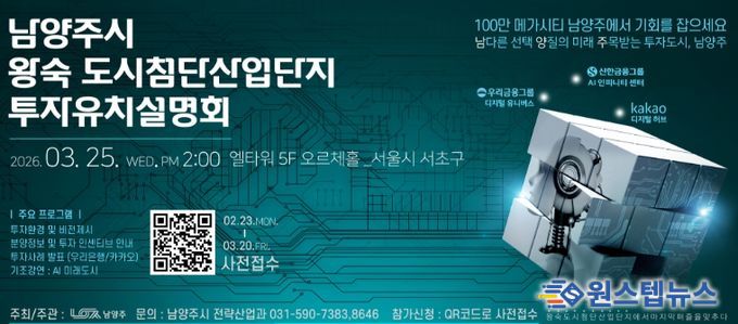 한편 이번 투자유치설명회 사전접수는 3월 20일까지 진행되며, 참여를 희망하는 기업은 시 누리집 배너 또는 행사 포스터에 게재된 QR코드를 통해 신청할 수 있다.