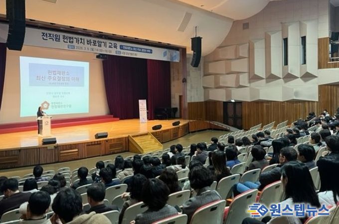 원스텝뉴스 이병희 기자 | 안양시는 9일 오후 2시 소속 공무원들을 대상으로 예승연 헌법재판소 헌법재판연구원 교수를 초빙해 ‘헌법가치 바로 알기’ 교육을 실시했다.