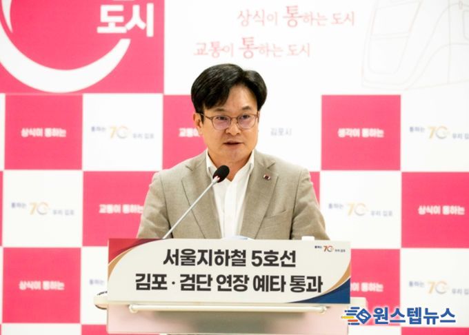 원스텝뉴스 이병희 기자 | 김병수 김포시장이 10일 기자회견을 열고 ‘서울5호선 김포검단연장의 예비타당성조사 최종 통과’를 밝혔다. 김포시에 따르면, 서울5호선 김포검단연장사업의 예비타당성조사가 10일 기획예산처 재정사업평가위원회에서 최종 심의·의결됐다. 이로써 서울5호선 김포검단연장사업이 본 궤도에 진입, 김포시에 서울 직결 중전철 노선이 처음으로 건설되게 된다.