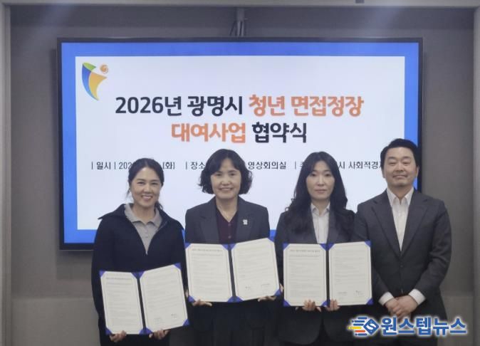 한편, 광명시는 지난 10일 시청 영상회의실에서 청년 면접정장 대여사업의 원활한 운영을 위해 정장 업체 데시데리오 테일러(대표 안은영), ㈜가온핏정장(대표 김수현)과 업무협약을 체결했다.