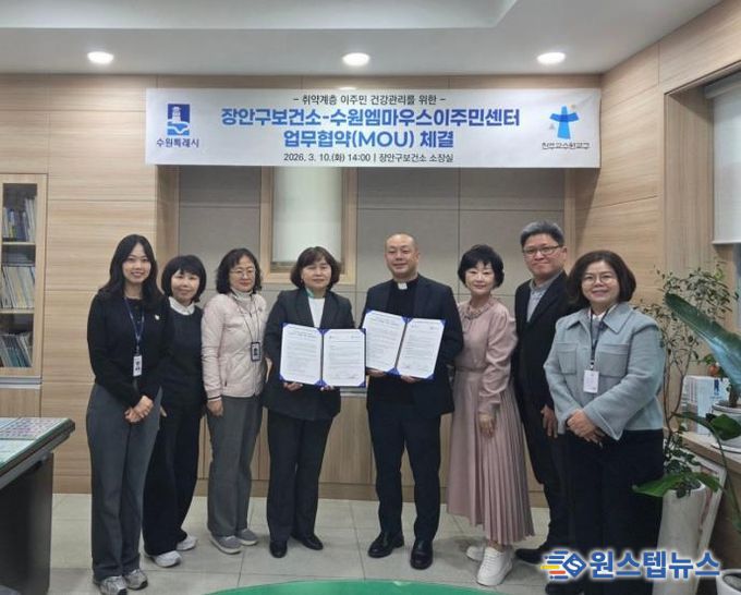 원스텝뉴스 이병희 기자 | 수원시 장안구보건소와 수원 엠마우스는 10일 장안구보건소에서 업무협약을 체결하고, 취약계층 이주민 건강관리 지원을 위해 협력하기로 했다.