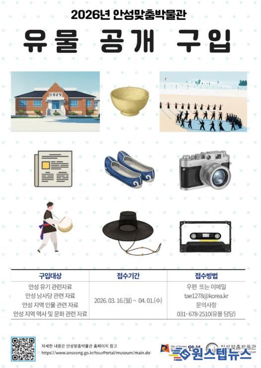원스텝뉴스 이병희 기자 | 안성시 안성맞춤박물관은 오는 3월 16일부터 전시․학술․교육자료 수집을 위한 유물 공개 구입을 추진한다고 밝혔다.
