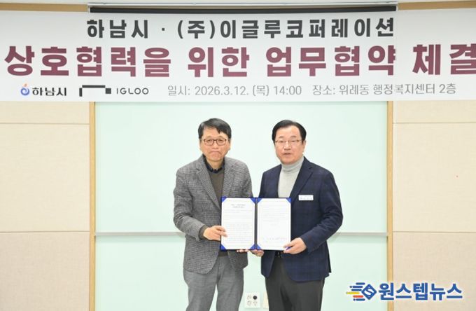 원스텝뉴스 이병희 기자 | 하남시는 3월 12일 ㈜이글루코퍼레이션과 본사 이전을 위한 업무협약(MOU)을 체결하고 AI 특화도시 조성을 위한 협력 기반을 공식화했다.