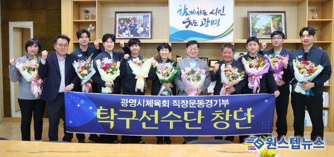 박승원 광명시장은 12일 오후 시장 집무실에서 탁구선수단과 광명시체육회·광명시탁구협회 관계자를 만나 창단을 축하하고 격려했다.